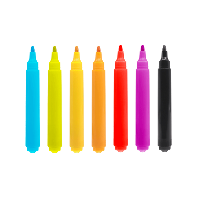 Цветные фломастеры. Содержат безопасные для здоровья легкосмываемые чернила. Безопасный вентилируемый колпачок. Толщина линии - 1 мм. Количество цветов: 7.